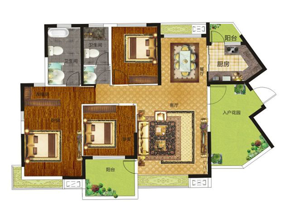 在售户型:二居89.9平米 三居122.36~138.58平米 四居141.59~176.2平米